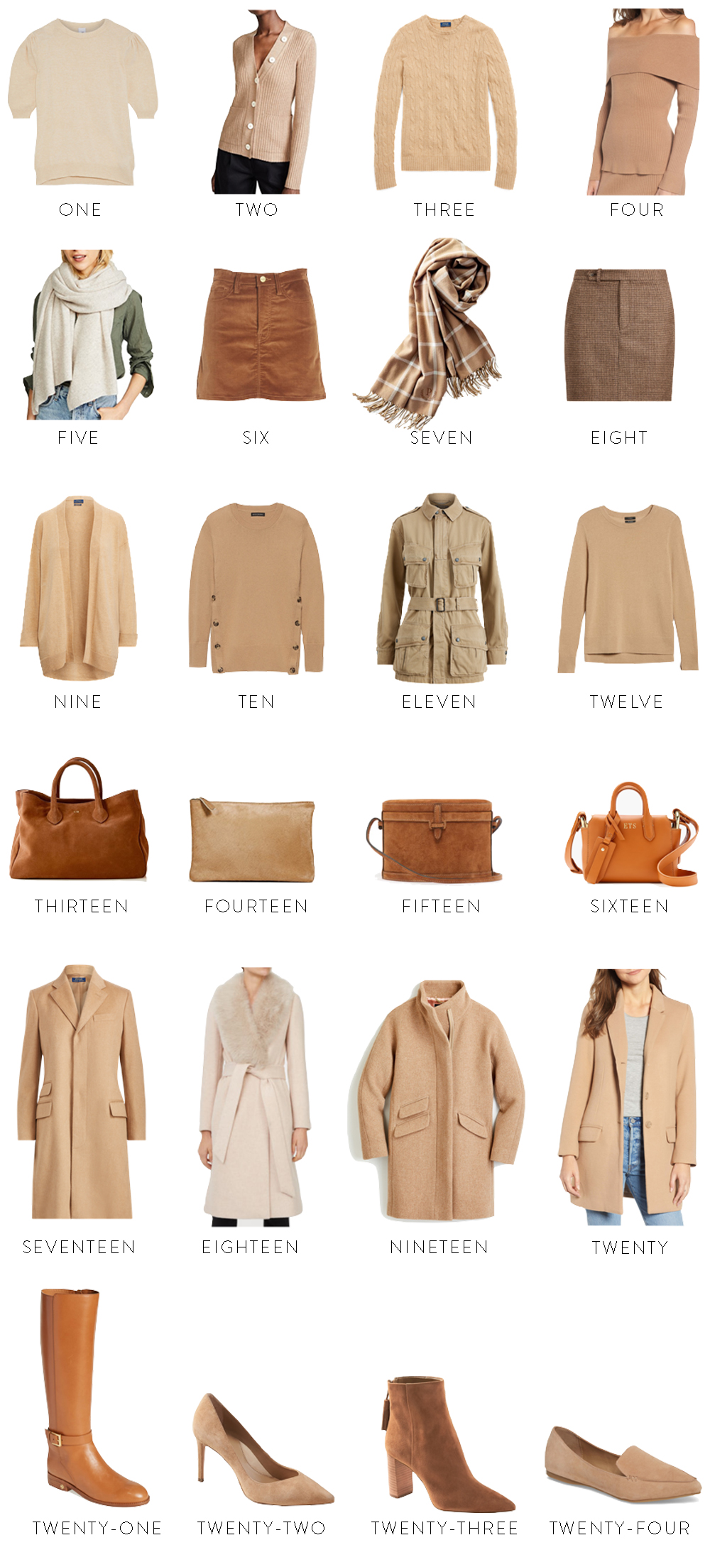 After I posted this outfit a couple weeks ago, someone messaged me asking if I would do a round-up of my favorite camel pieces for fall. I love wearing all shades of brown and tan come fall, whether in the form of a bag, a coat, a pair of boots, a scarf, or a sweater. It’s one of the few colors I find universally flattering so I’ve added quite a few camel items to my closet over the years!