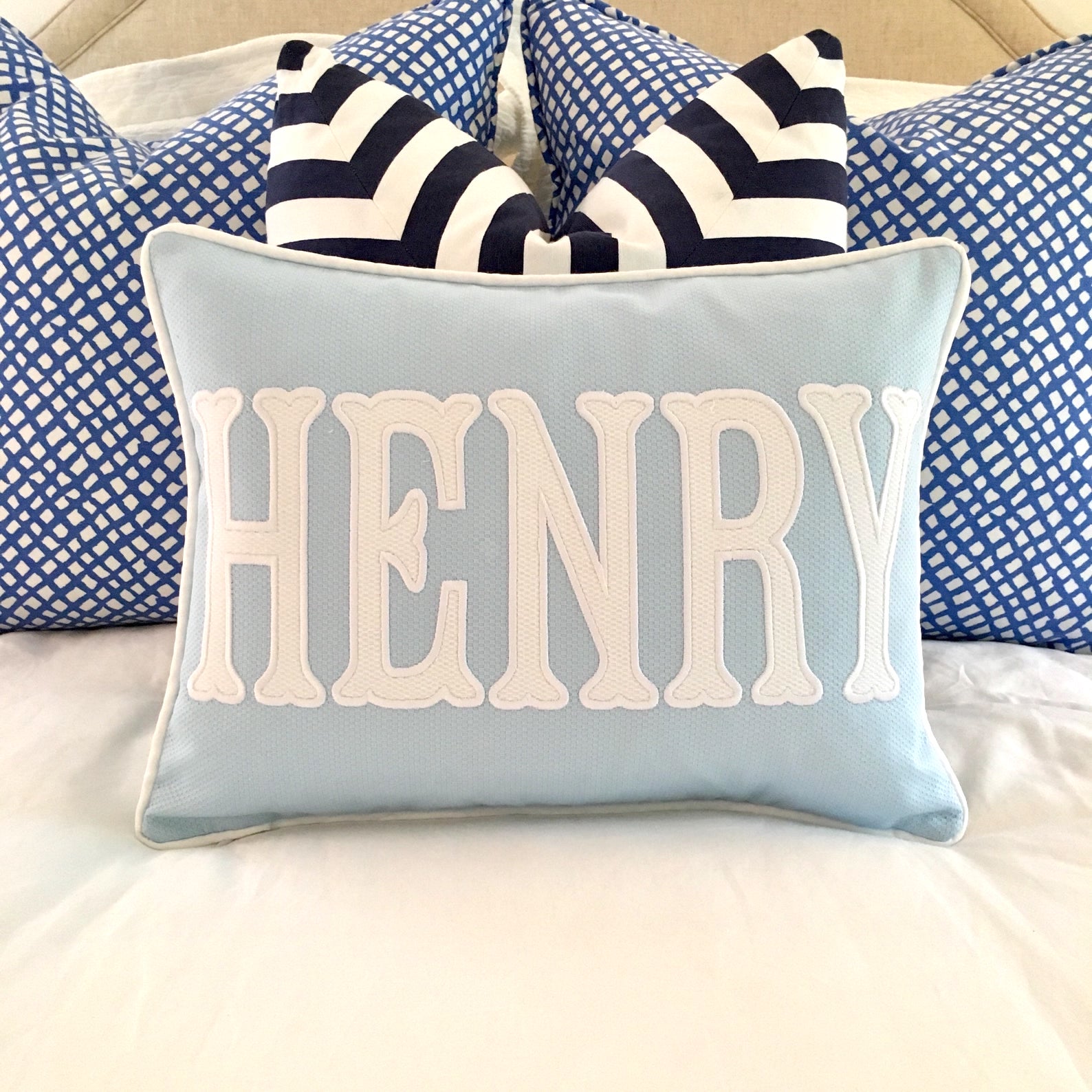 {applique monogram boudoir pillow — see ours in Teddy’s nursery}