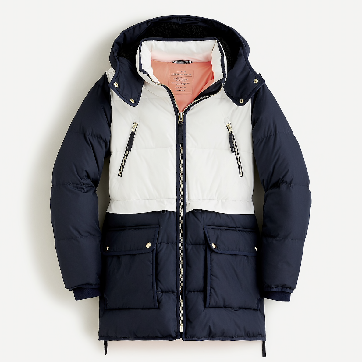 J.Crew colorblock puffer coat, $248