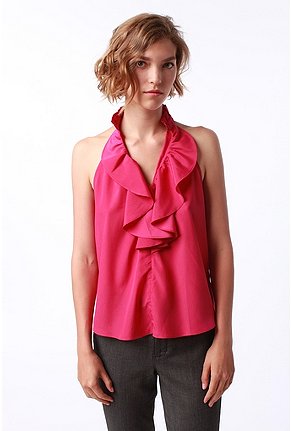 Pink ruffles feel fun and flirty with white jeans for summer and more glam tucked into a black skirt for a night on the town.