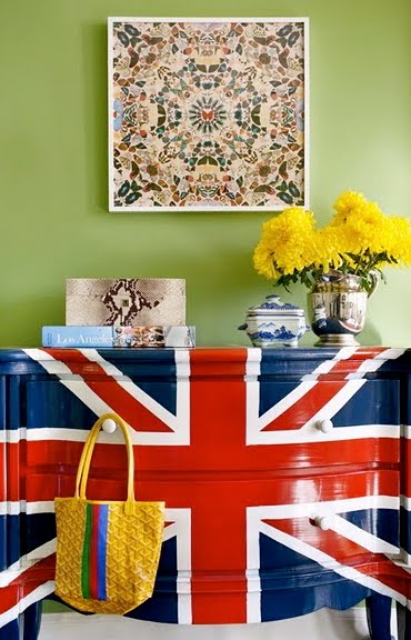 Besides the above inspiration, the only project I’m dying to try is this Union Jack dresser I spotted on From the Right Bank. How perfect since Michael just returned from five months in London!
