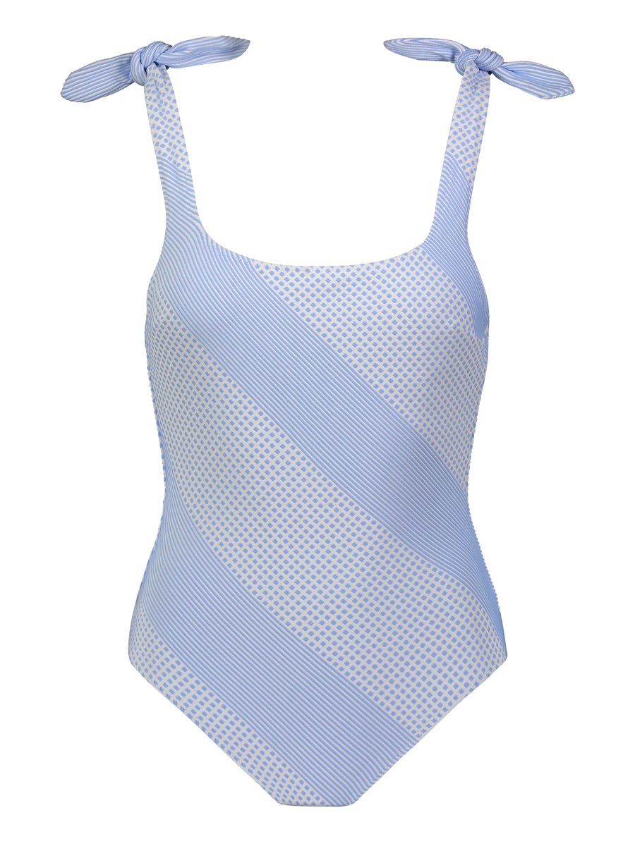 Lemlem swimsuit  //  Lemlem has so many gorgeous pieces and I landed on this pretty powder blue one-piece with bow shoulders and a low back. I ordered the size small and need to have the straps shortened as it dips a little too low in the front, but if you’re taller than I am (5’1″) you should be totally fine! It was definitely a splurge but the quality is gorgeous. The same print is also available on this darling popover dress.