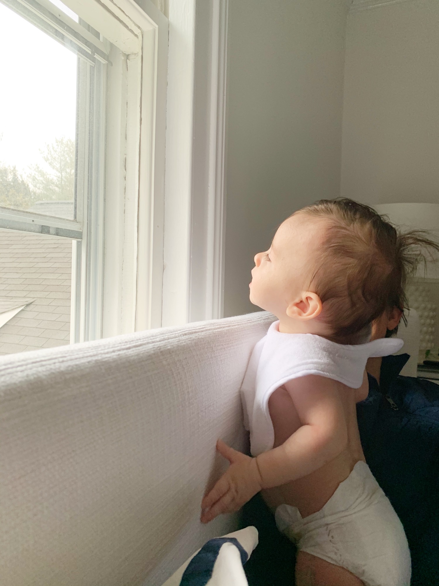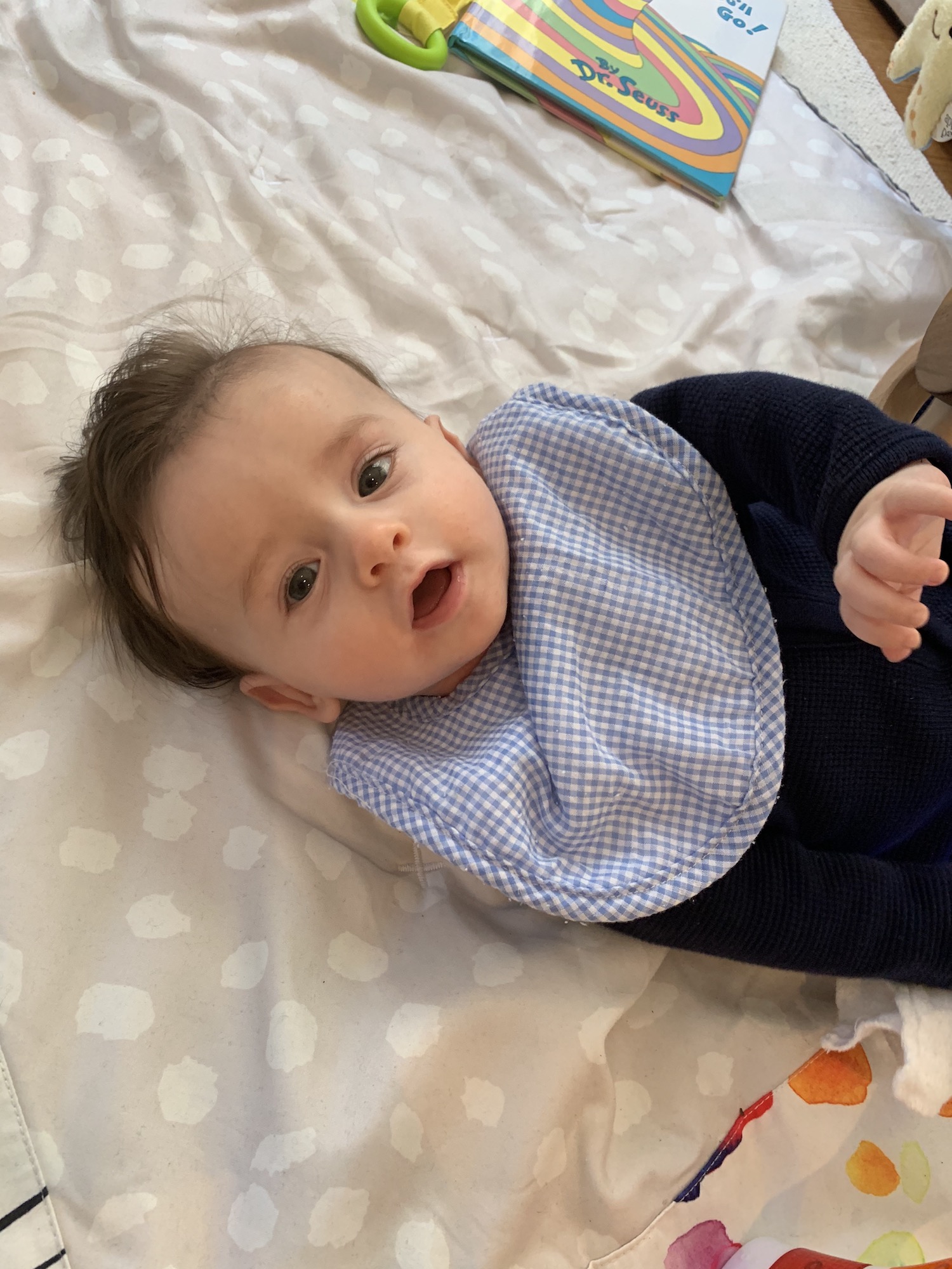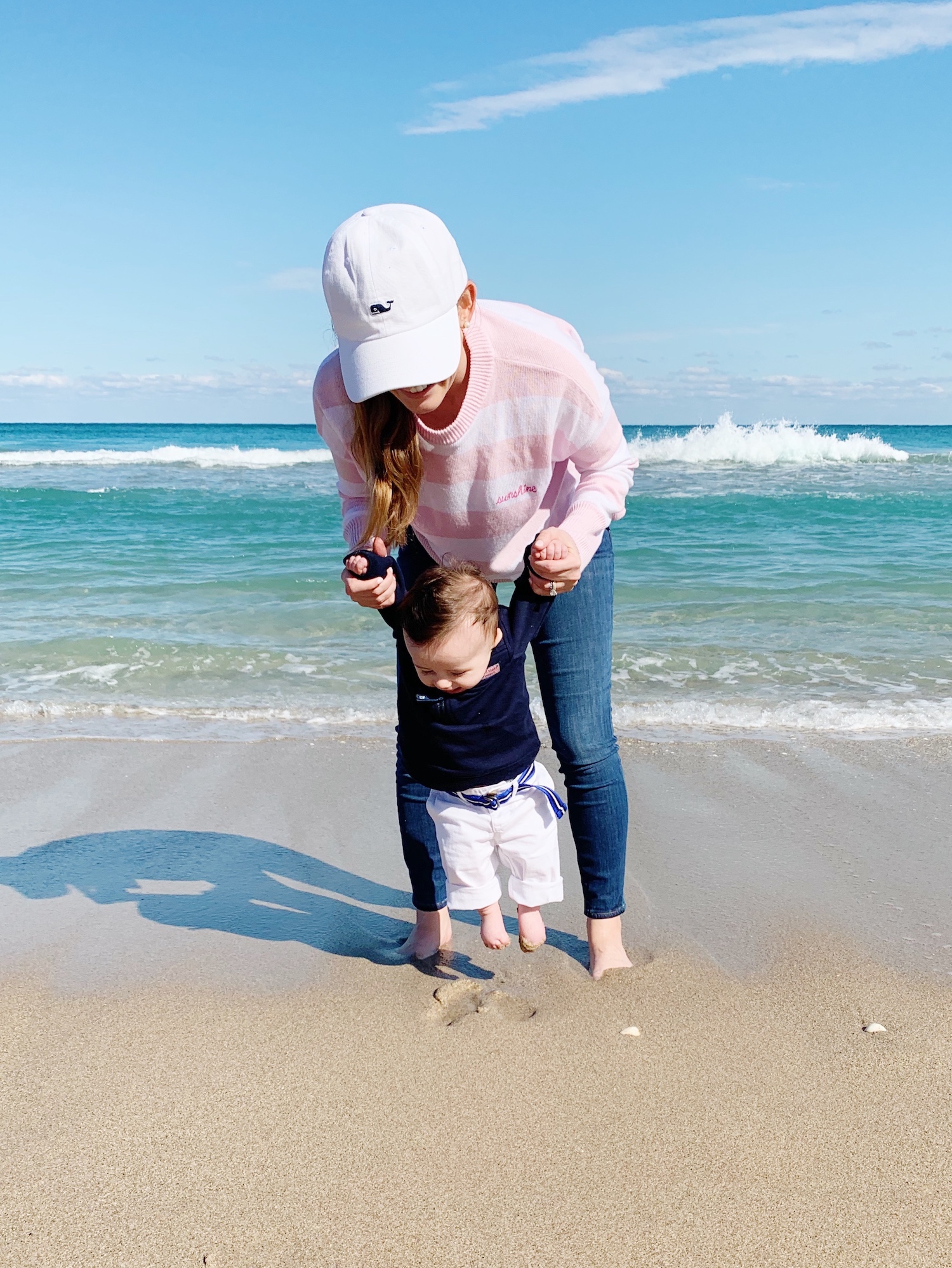 He still loves to be propped up sitting or standing and he’s logged some serious time in this jumpscape. He’s also started to reach for his toes and everything else in sight! It’s definitely gotten harder to keep him entertained as he’s gotten older — part of me yearns for those sleepy newborn days when he was happy just cuddling and chatting because I now have to move him from one “activity” to the next every several minutes before he loses interest and starts screaming. (See some of our favorite toys in this post!) It was so, so nice to be in Florida with him this past week and be able to pop him in the stroller and take a stroll to grab coffee without spending a half hour putting on winter layers and bracing ourselves for the cold. I can’t wait until it warms up in Connecticut so he and I can go on more outings together!
