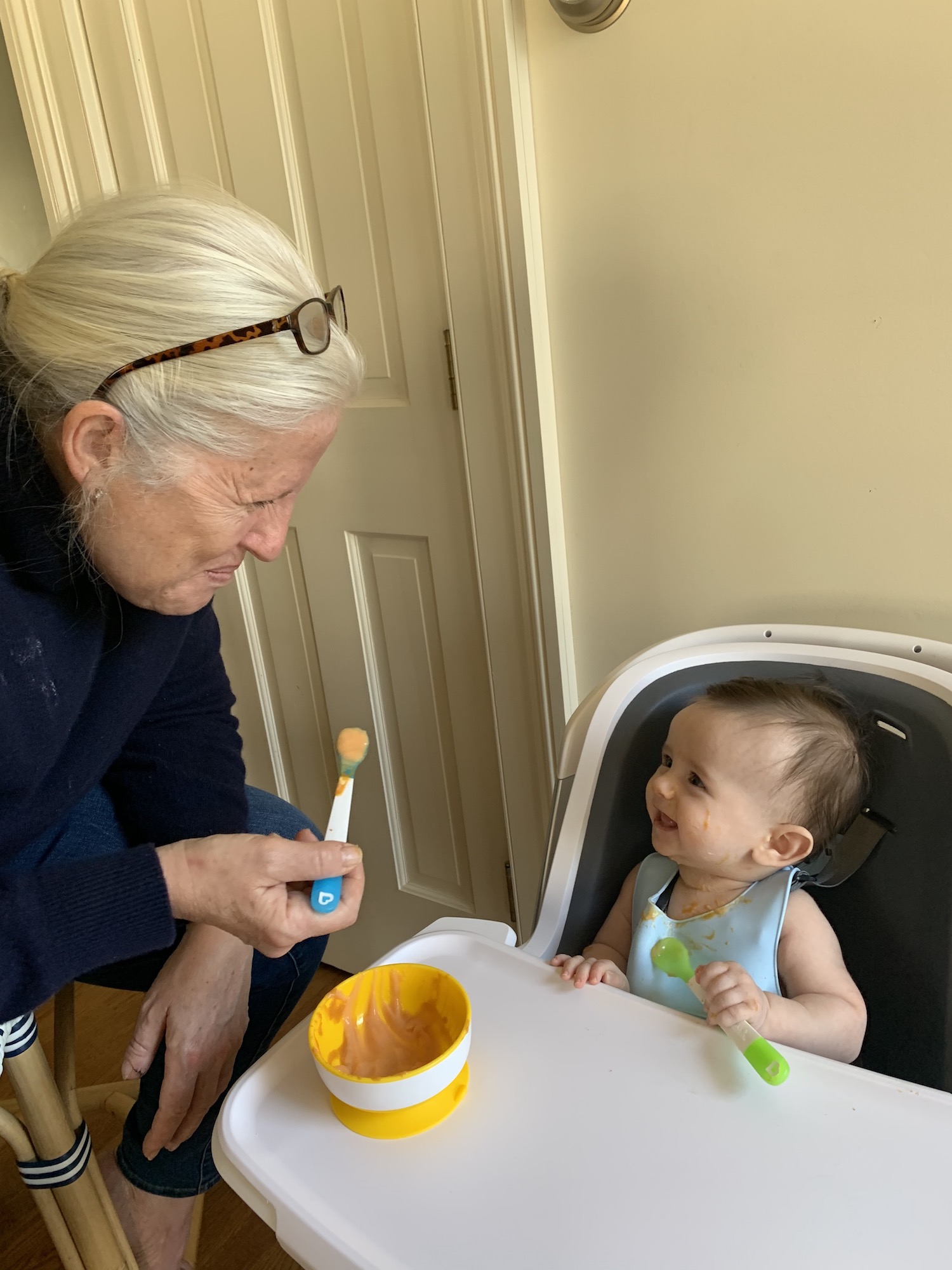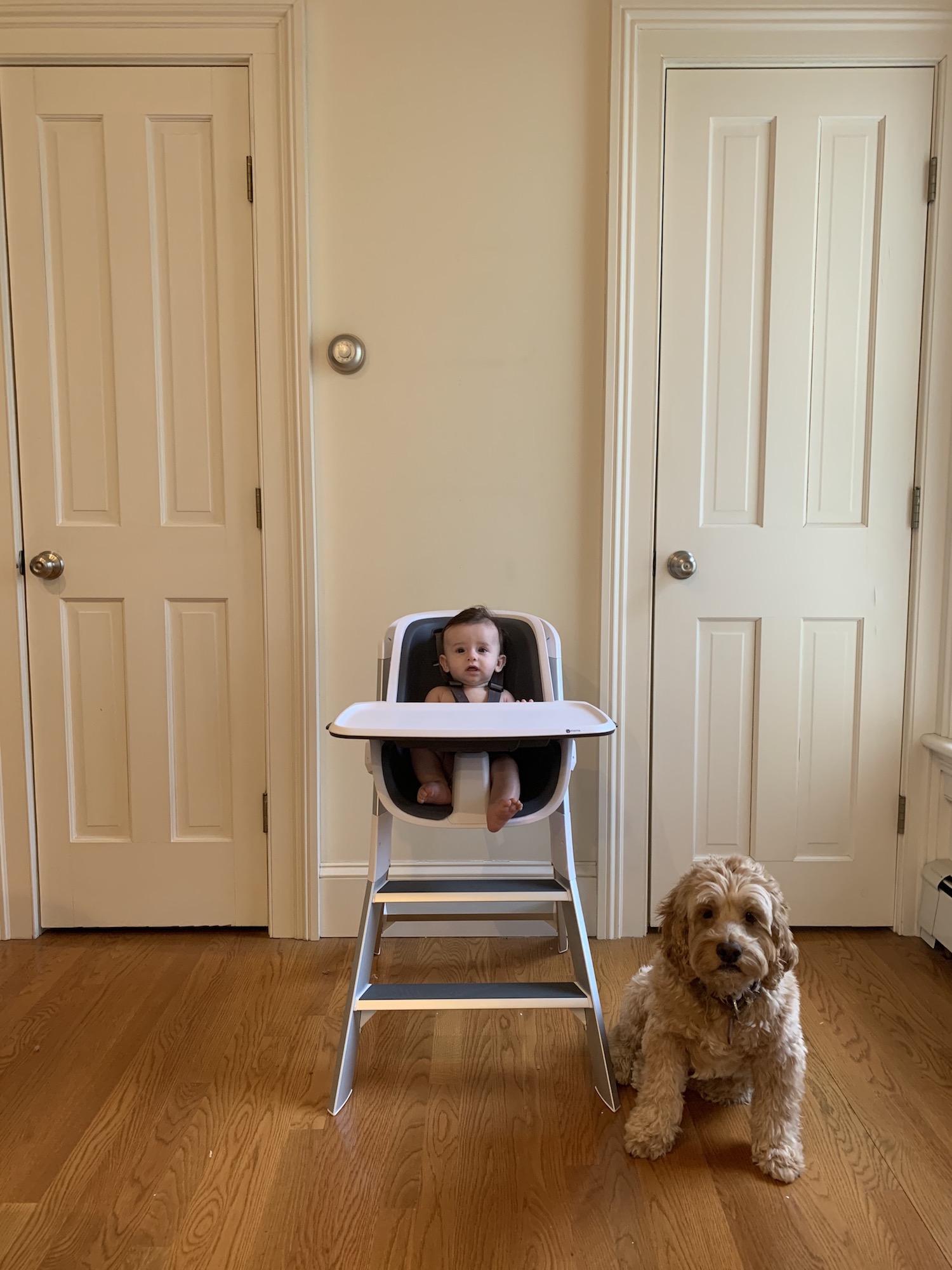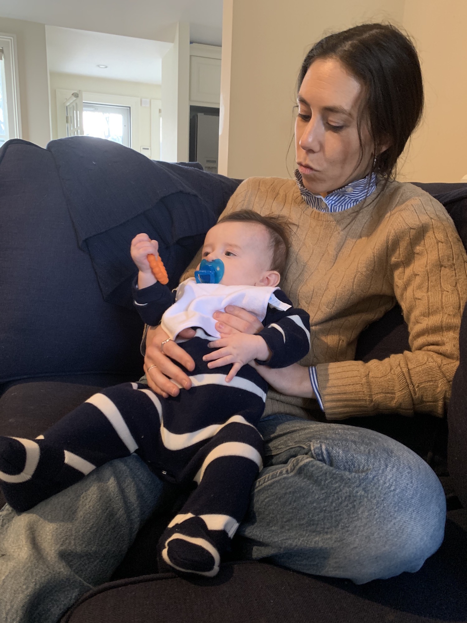 So far he’s been a fan of sweet potatoes, carrots, bananas, and pears, iffy on oatmeal and prunes, and a hard no on green beans. Our pediatrician also encouraged us to introduce peanut butter mixed with water, which he loves! I’ve found introducing solids to be a particularly frustrating topic to research online as a new parent (though I totally understand why there’s no one approach that works for every family!) so we’ve been leaning on our pediatrician for advice about what foods to introduce when. I’m still breastfeeding six times a day so we’re trying not to put any pressure on feeding him solids and just exposing him to as many flavors and textures as we can in the coming months.