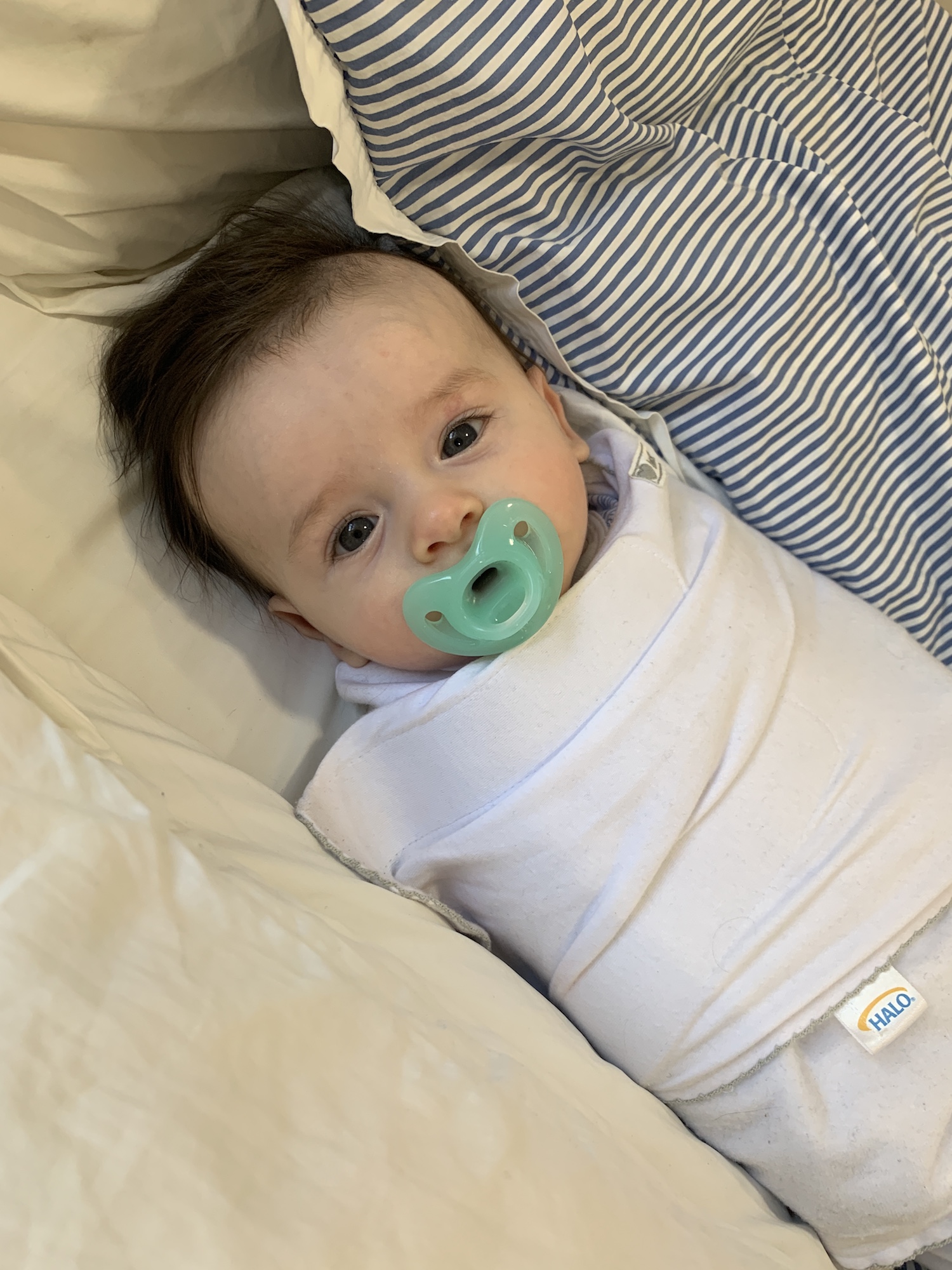 His sleep routine took a major hit this month which is apparently pretty normal around the 3.5-4 month mark. He went from sleeping 7-8 consecutive hours to waking up and screaming nearly every hour, but he’s slowly giving us longer stretches again. Our ideal schedule still looks like the one I outlined in this post, but that pretty much went out the window these past couple weeks. I downloaded the Taking Cara Babies e-book per many of your suggestions, but sleep training while sick with the flu sounded like a recipe for disaster so we haven’t really delved into that just yet. He’s not rolling from his back to his stomach yet so we’re still swaddling him in these sleepsacks most nights. We have the Baby Merlin’s Magic Sleepsuit but it feels a little roomy on him (he has way more mobility in it and constantly wakes himself up?) so I just ordered this transition sleepsack that my friend Jen swore by with her second baby. I’m thinking that dropping the swaddle is in our near future and a little nervous that will be a tough transition so hopefully I’ll have positive developments on that front to share next month.