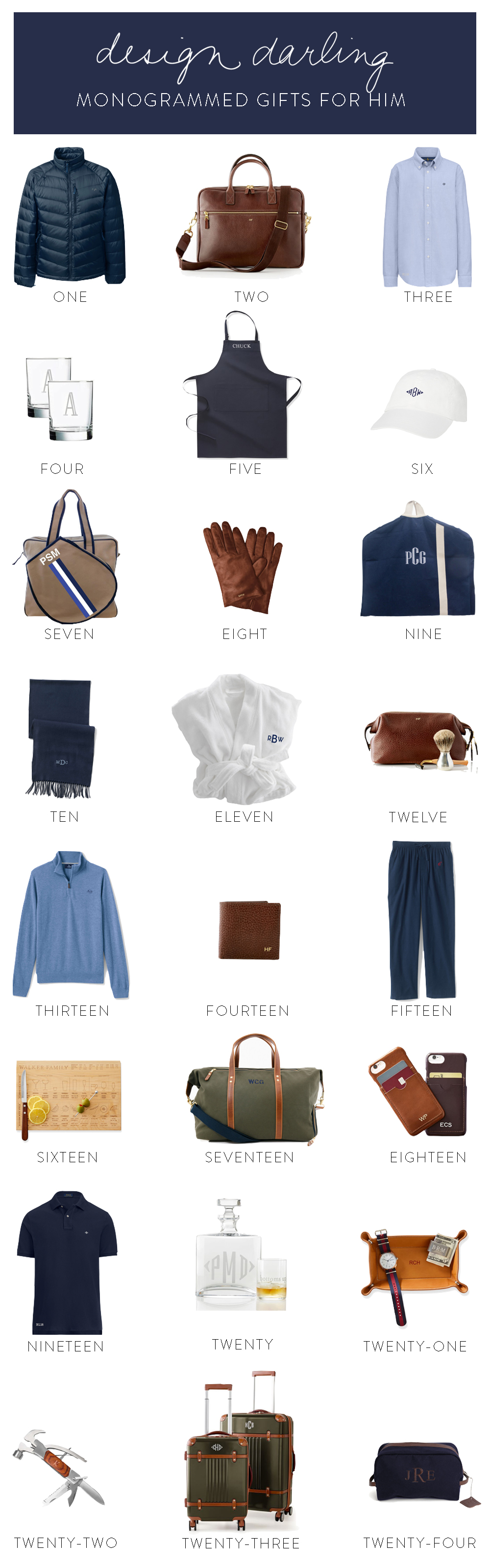 Following up Tuesday’s gift guide on monogrammed gifts for her with monogrammed gifts for guys! I love a monogram on just about anything and while my dad, husband, and brothers don’t share that level of enthusiasm, I still like to add a monogram to go-to gifts for them like sweaters and leather goods because I think it shows a little extra thought and attention to detail.