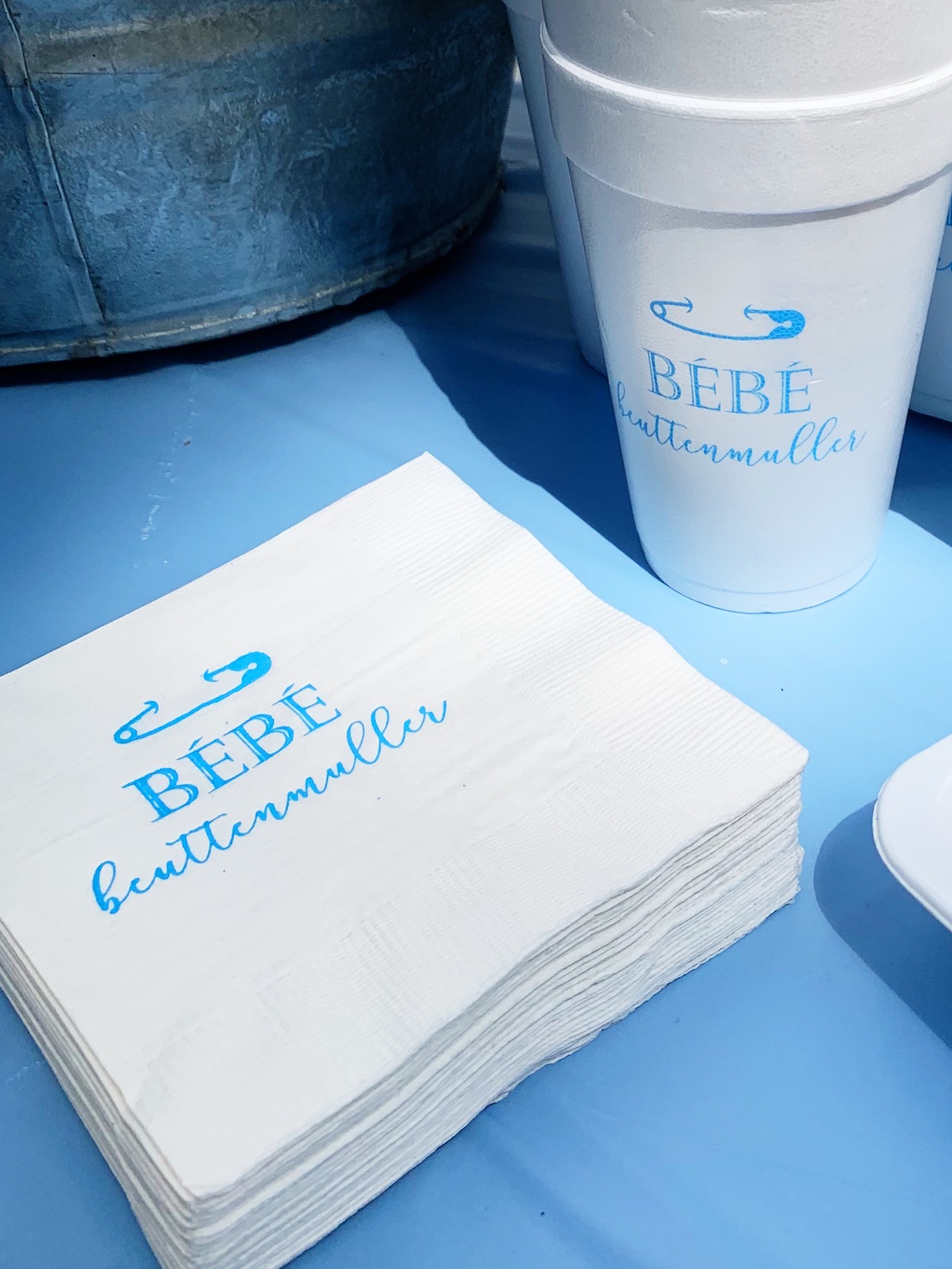 I couldn’t believe Ali brought these personalized cups and napkins on a plane from Dallas! I’m not sure where she had them made but you can find sources for similar personalized party goods I’ve ordered here and here.
