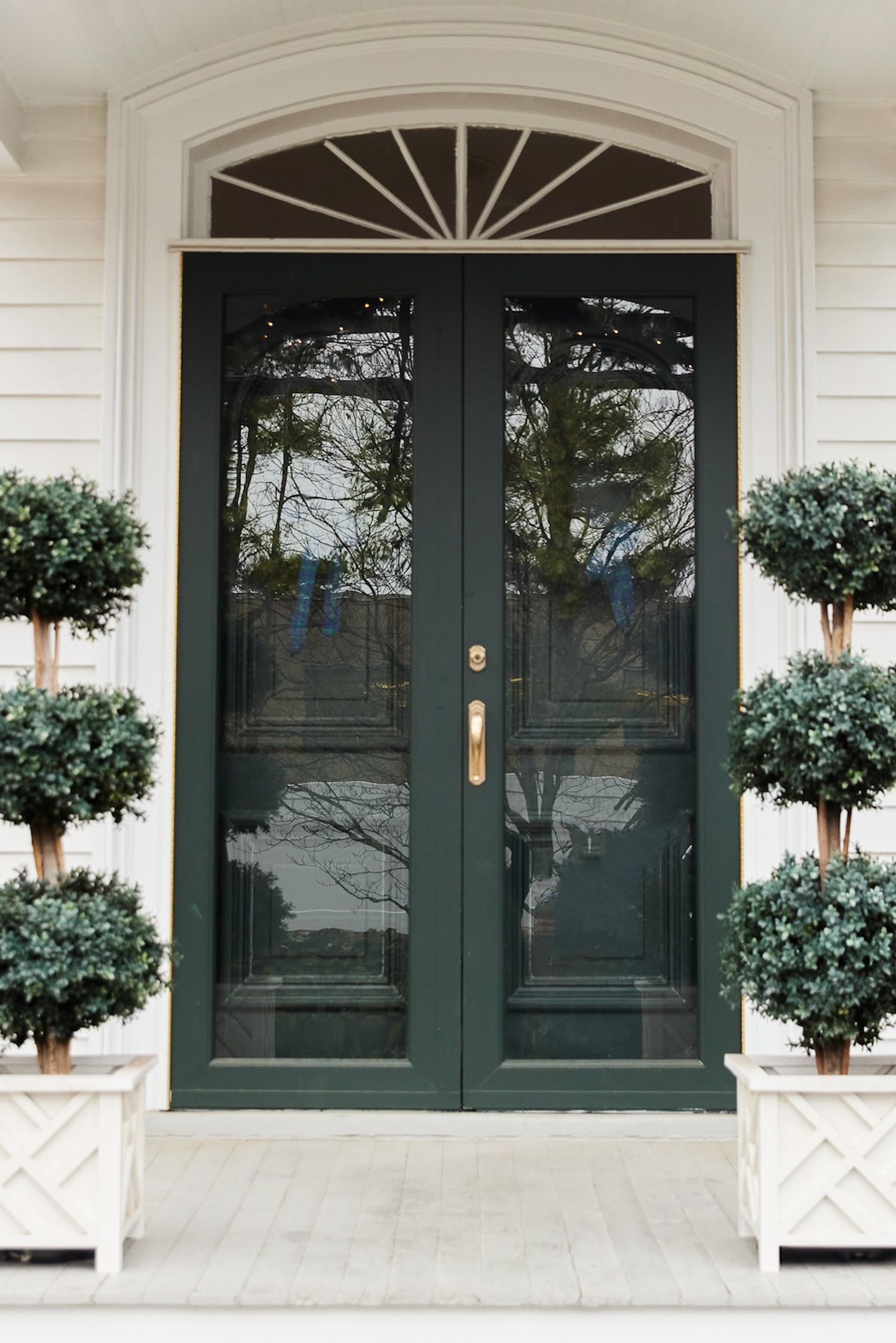 *our exact faux triple ball topiaries and lattice planters