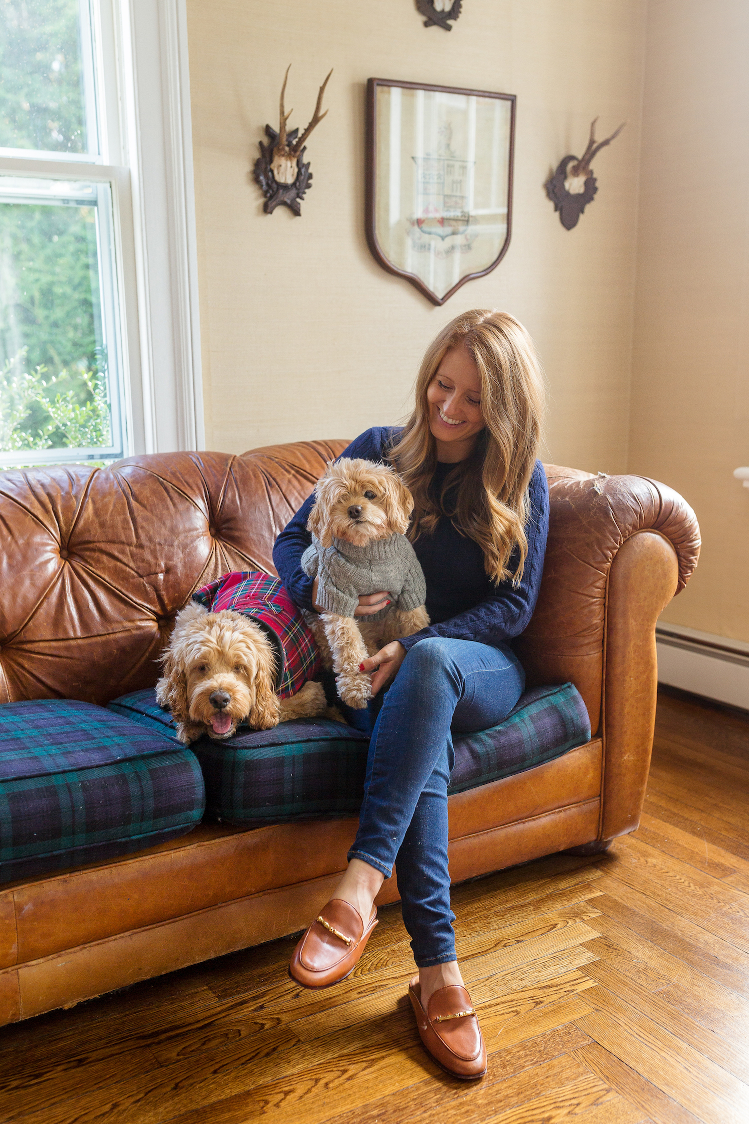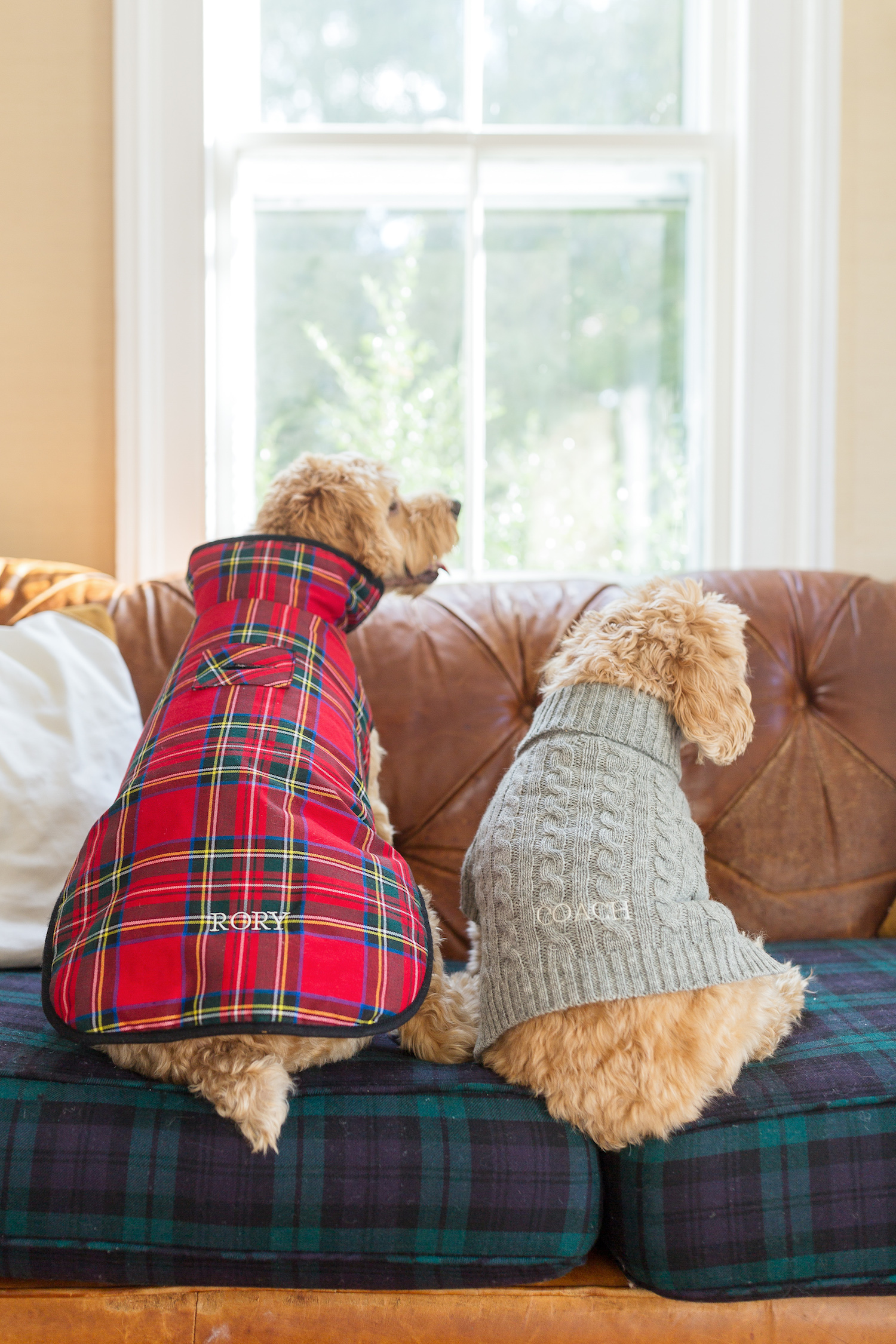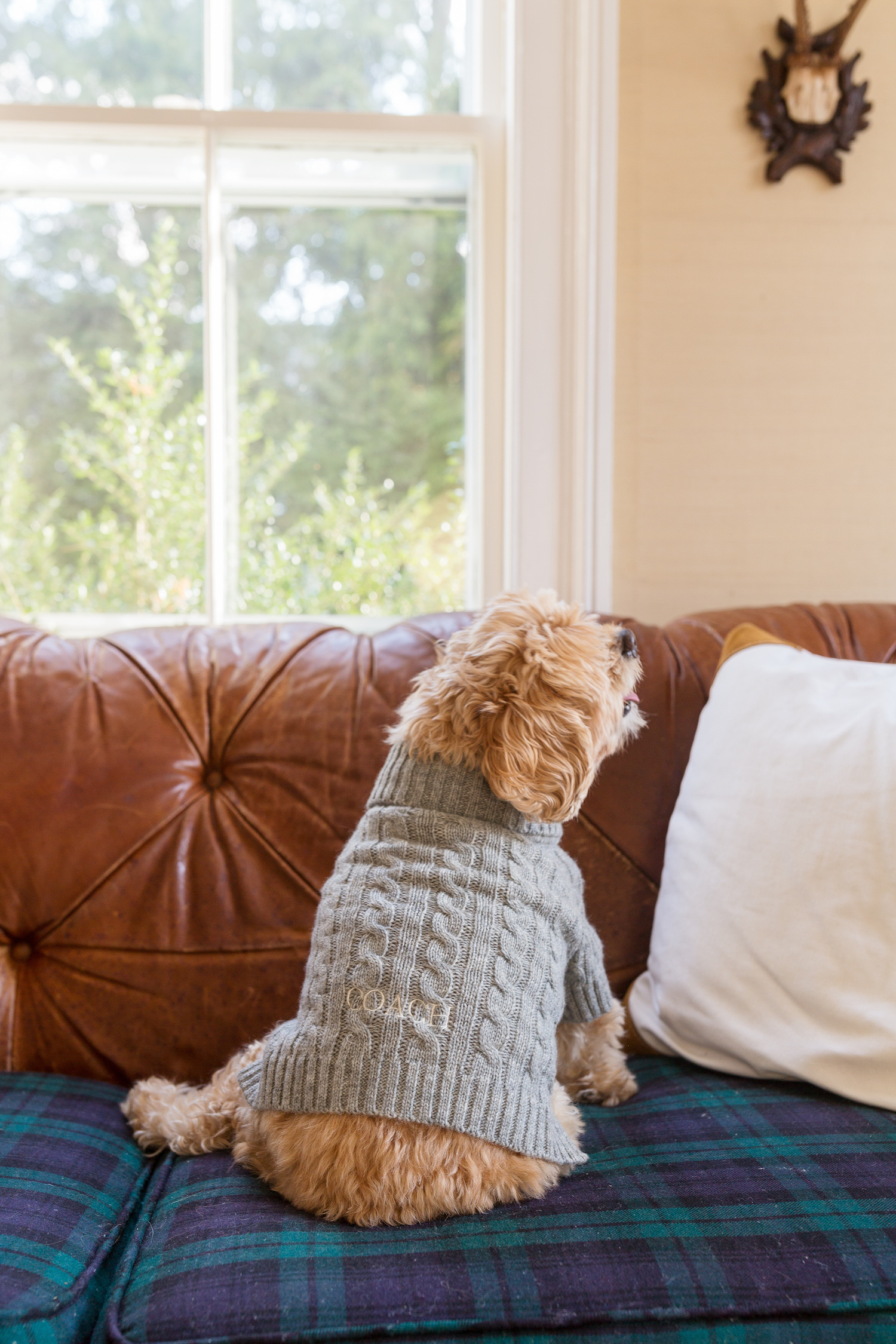 plaid dog bed // plaid dog coat // cable-knit dog sweater
