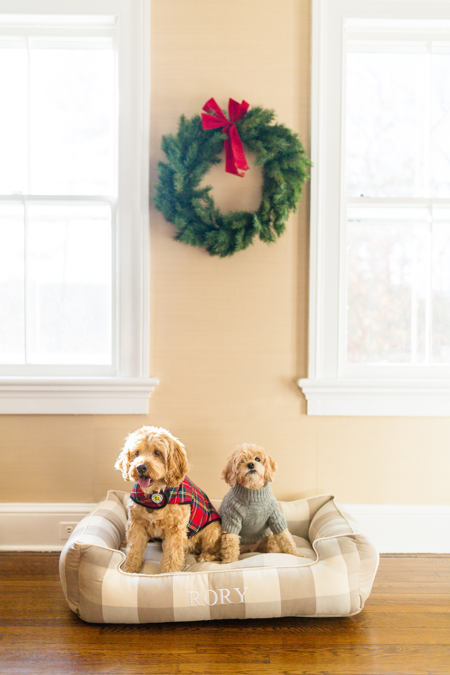 Rory has been the best big brother to Teddy and he’s earned himself a spot on the nice list! He has never loved a dog bed more than this plaid one personalized with his name. I ordered the extra-large size so he and my family’s dog Coach could share it! I can’t wait to dress them in these little outfits — Rory in his plaid coat and Coach in his cable-knit sweater! — on Christmas morning. (Rory is wearing the size large and Coach the size medium.)