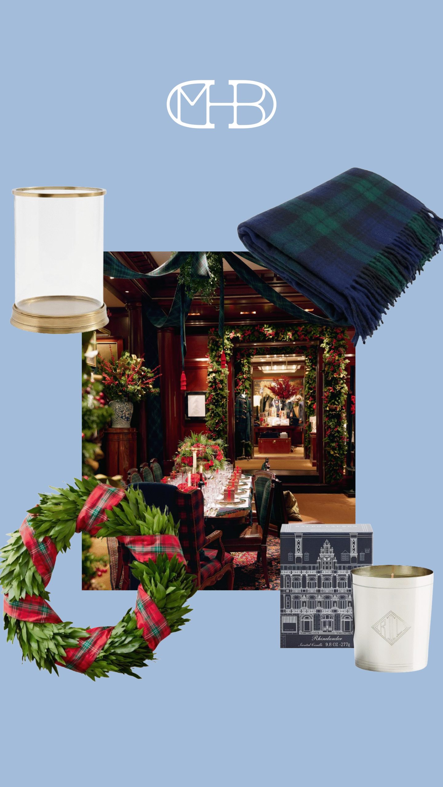 The core elements of the Ralph Lauren classic holiday aesthetic really never go out of style: layered greenery, rich tartans, twinkling white lights, and a pop of red amidst all the brass, glass, and plaids. You can lean into that timeless look with a few simple swaps: think boxwood wreaths tied with my favorite blackwatch ribbon, glass hurricanes with pillar candles on your mantel, and a tartan throw or two draped over an armchair by the fire. Below I’ve rounded up a few favorite finds that capture that collected, elegant feel that Ralph Lauren does so perfectly, whether you’re decorating your front door, setting the table, or just making your living room a little more cozy in time for the holidays.