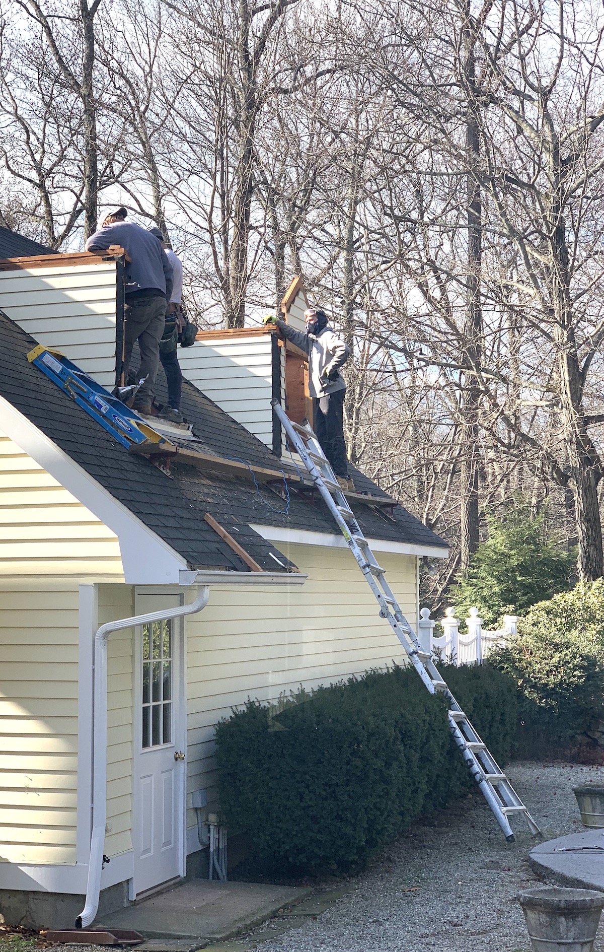 Last week they dormered the roof above the garage which instantly transformed the loft space where my parents will be moving in! The new roofline more than doubles the amount of living space up there because the ceiling is now between 7’ and 9’ where it previously sloped all the way to the floor. (It’s worth watching the video tour if this doesn’t make sense in writing/photos!)