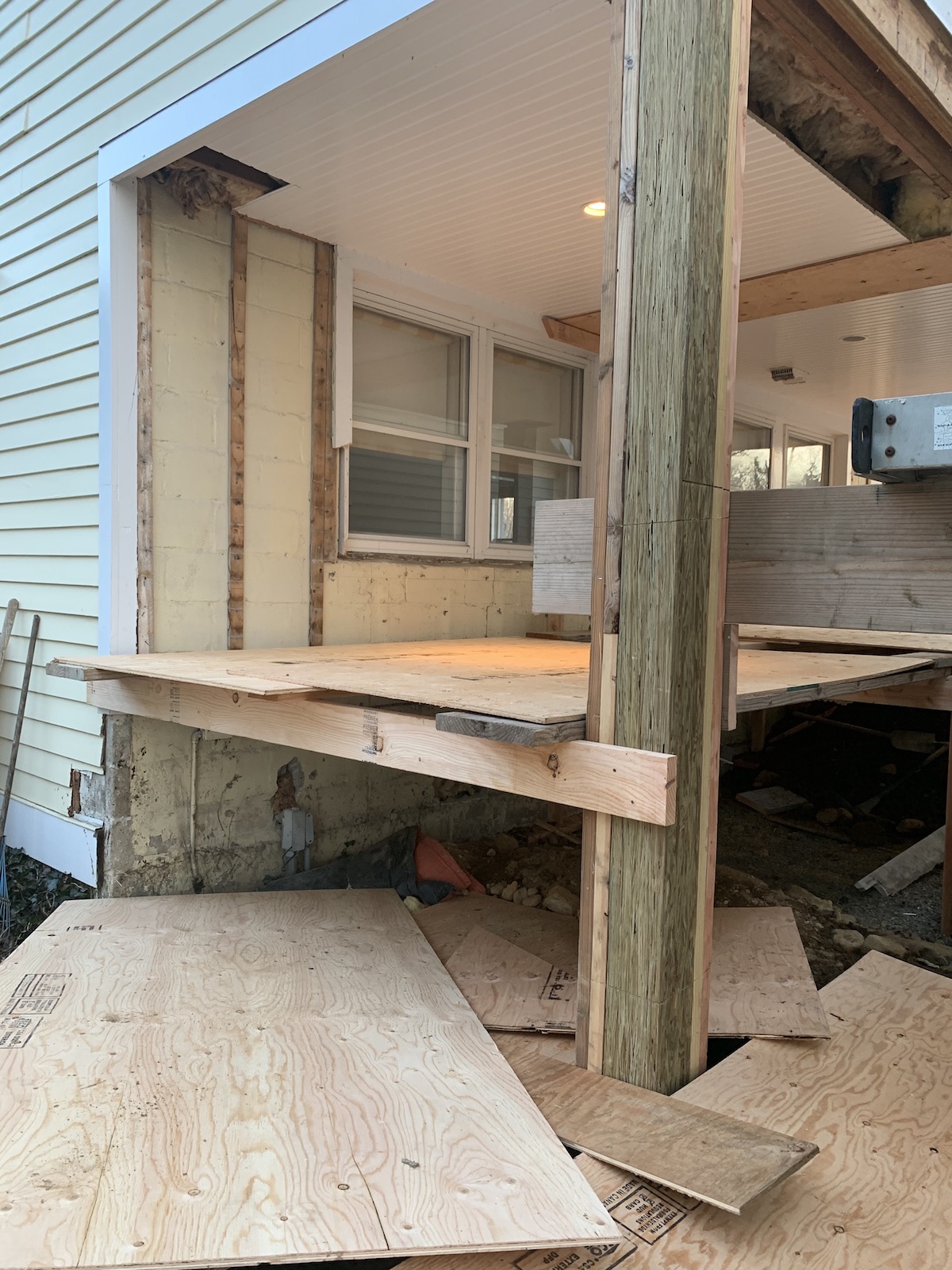 wall between existing playroom and future mudroom at the end of day two