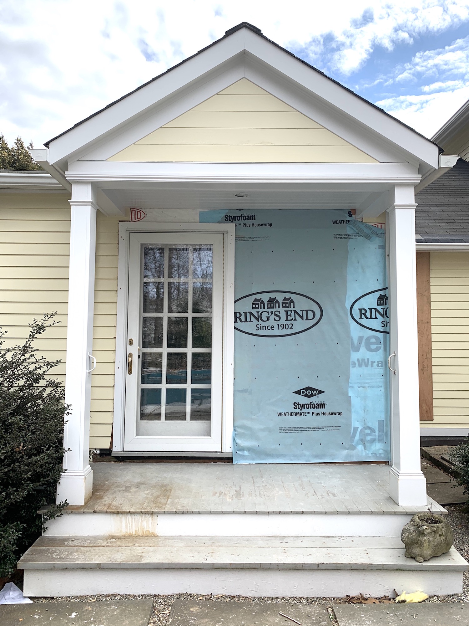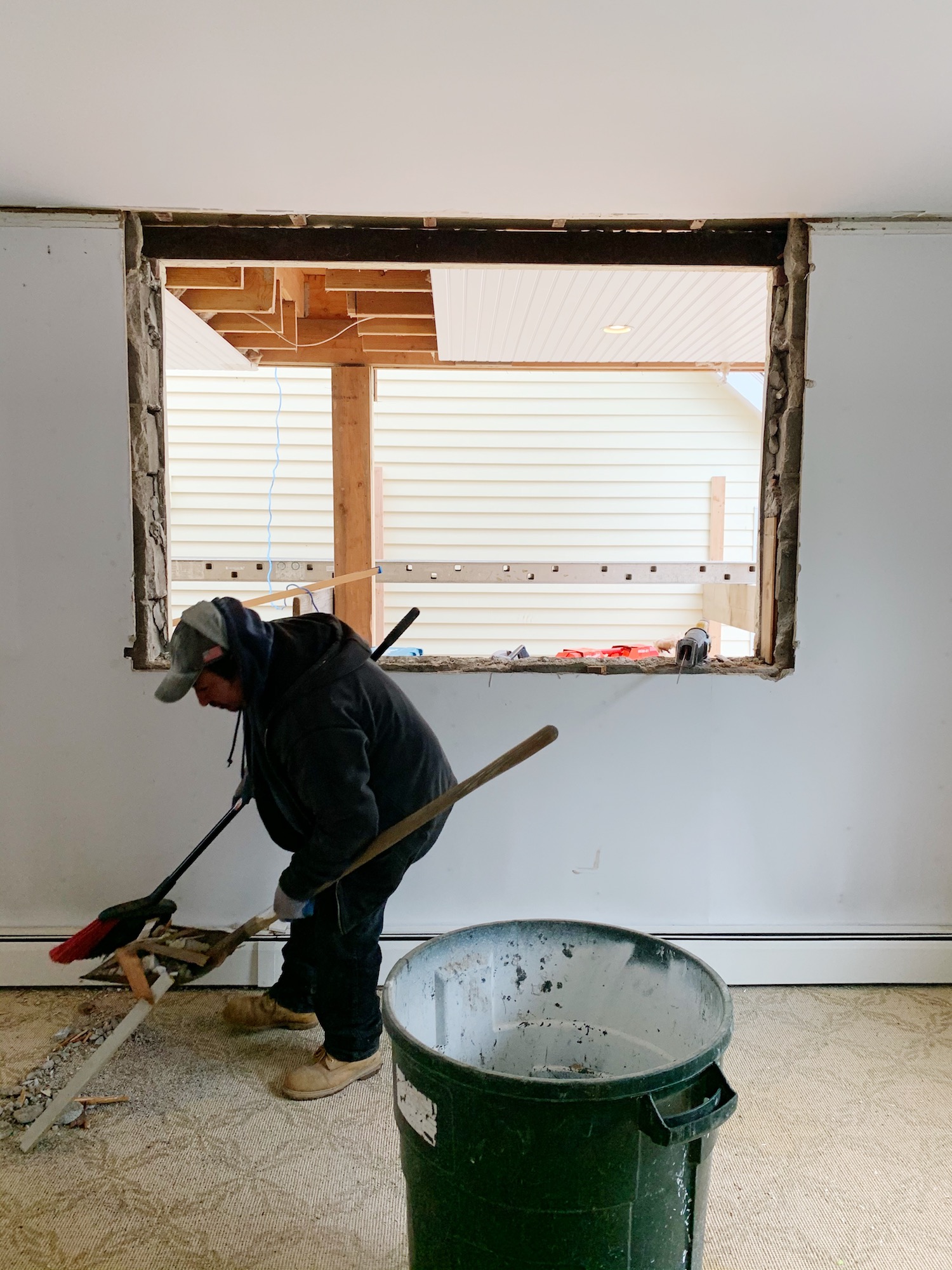 The first thing that happened since my last update was removing the two sets of windows in the sunroom to create a solid wall on the left (since this will no longer be an exterior wall) and a cased opening on the right that leads into the future mudroom. The right set of windows was in good shape so we’ll be repurposing those on the back wall of the family room above where our sectional will be.