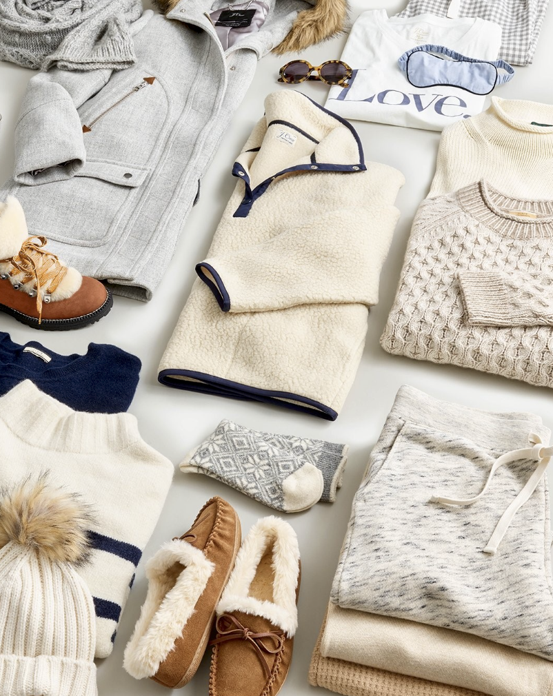 Top picks: cocoon coat // colorblock puffer coat // crewneck sweater with shoulder buttons // half-zip sweater for him // my favorite slippers