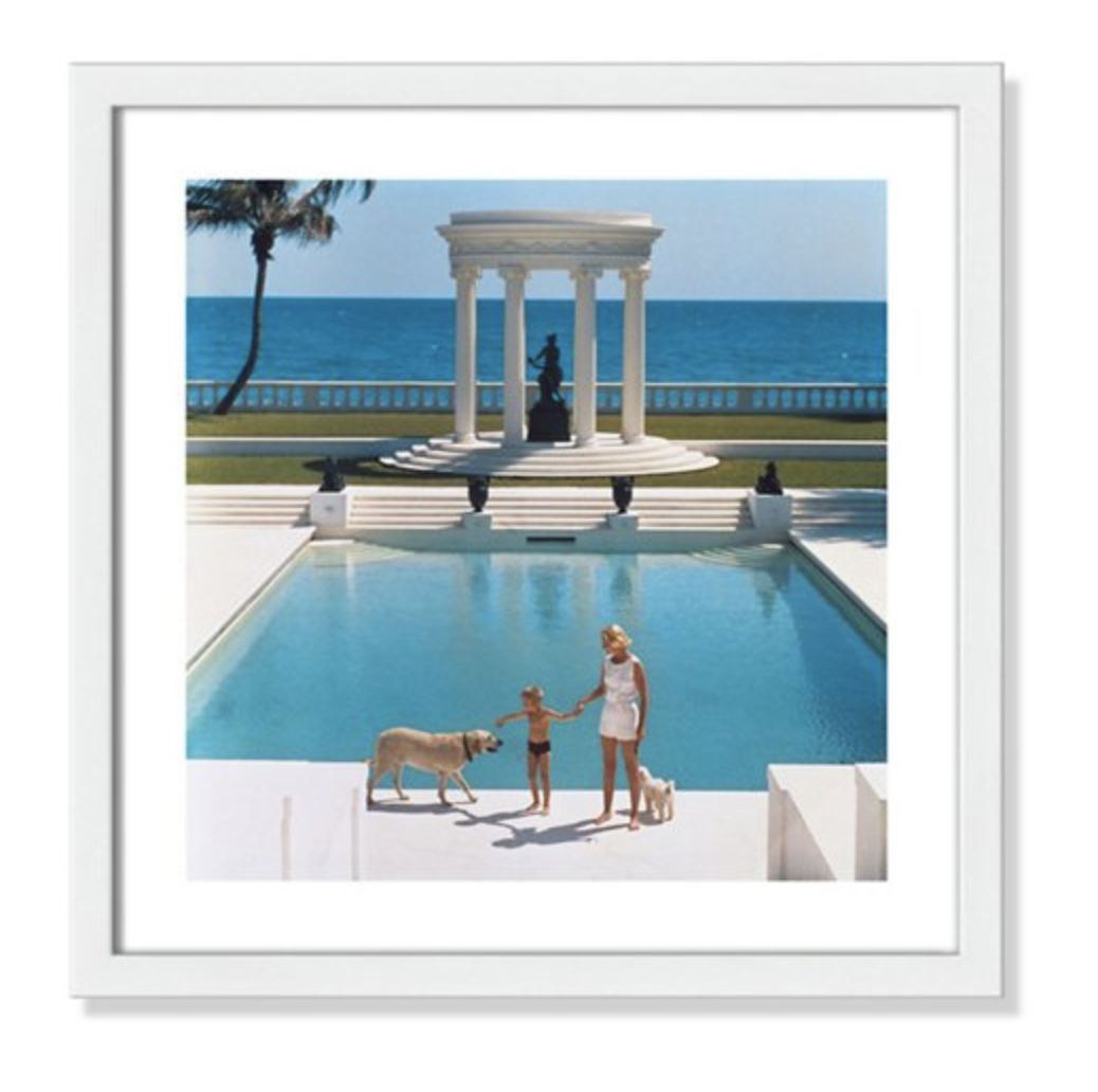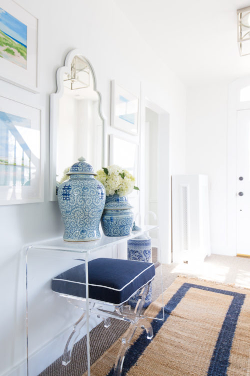 Top picks: lacquer wall mirror // under $50 striped ginger jar // our living room chairs // Slim Aarons print // striped skirted ottoman