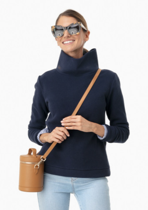 Top picks: cable knit sweater // Dudley Stephens pullover // Hunza G swimsuit // navy tiered dress // pearl sleeve sweater