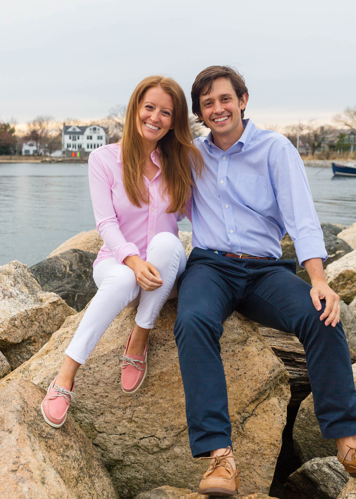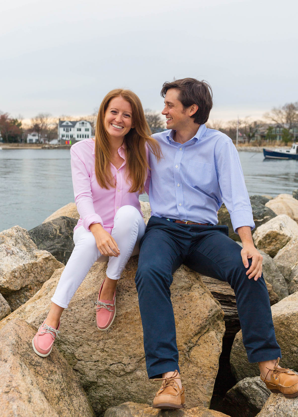 With the big reveal behind us and the arrival of spring in Connecticut, I’m feeling more and more excited about what the next few months have in store. Will and I are hoping to spend as much of the summer on Nantucket as possible before the baby arrives and Sperry was kind enough to send us new boat shoes for the spring and summer months! Sperry boat shoes are such warm weather staples in New England and I’m so excited to have a fresh pair to kick off the new season! Their authentic original boat shoes are classics for a reason and I picked out the sahara brown for Will and the washed red for me. A little heads up that the washed red is more of a light pink in person, but what’s not to love about a girly take on a classic boat shoe?!