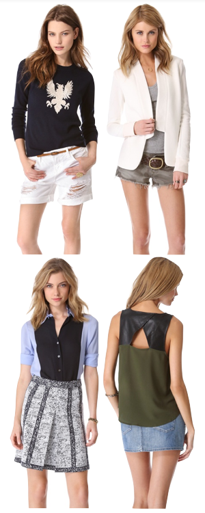 Around this time each summer my attention starts to drift toward fall fashion in spite, or perhaps because, of the ninety degree heat. It’s probably my favorite season to shop dress for — blazers, button-downs, light sweaters, layering! Of course fall is a long way off on the east coast so I’m trying to focus on transitional pieces that will work from now through September or October. Above are a few of the pieces catching my eye: the most delightfully preppy sweater, a cool blazer (for less than $200!), a beautifully made dress shirt, and a just-edgy-enough tank that will look as cool with white jeans now as it will with fall blazers later.