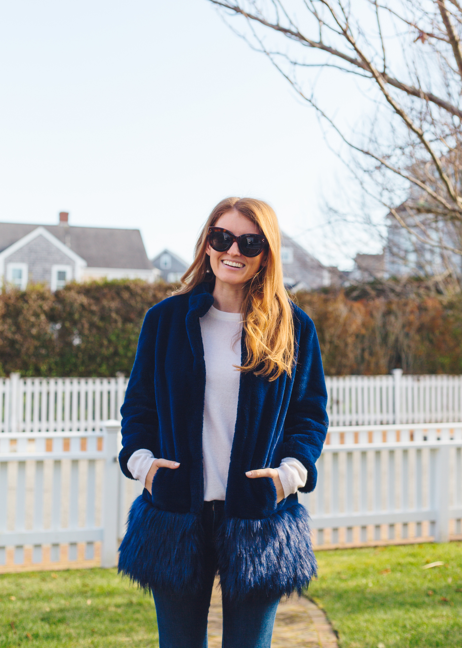Tyler Boe faux fur topper (also available in tan)  //  Tyler Boe cashmere bow sweater
