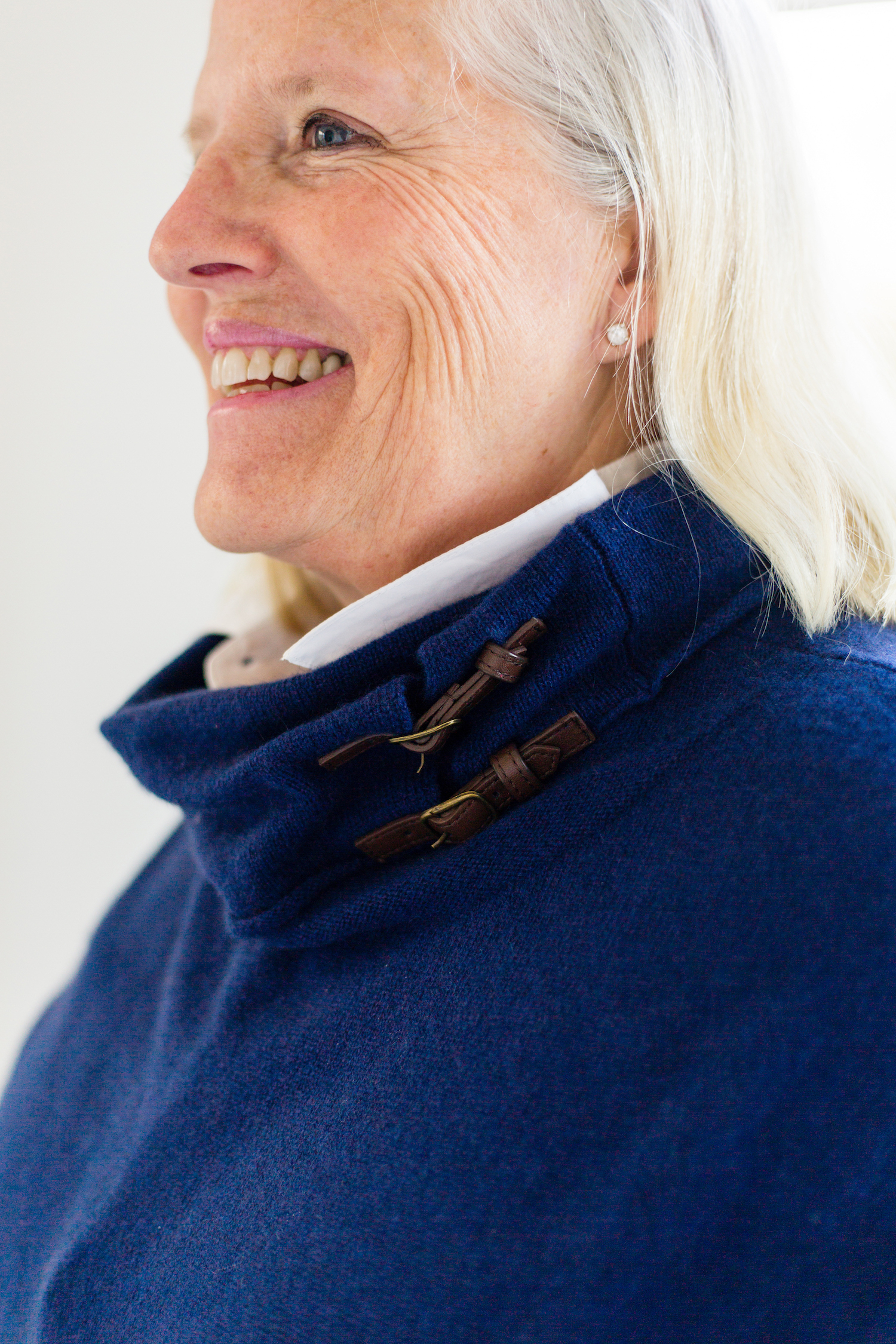 My mom picked out this cashmere buckle cape to layer over this bell sleeve shirt. She’s also been wearing this cotton cashmere dress on repeat… can you tell my love of navy is no accident?